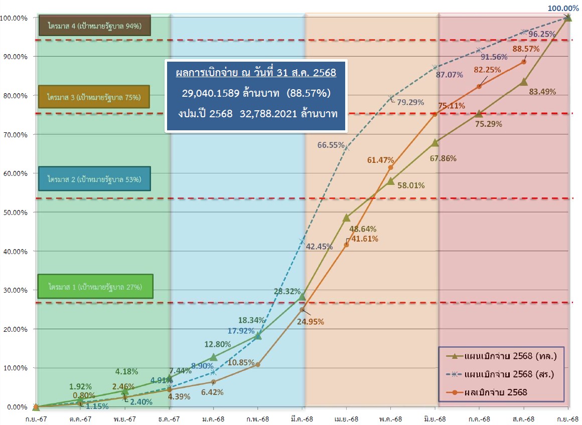 ผลการเบิกจ่าย ณ วันที่ 31 สิงหาคม 2568